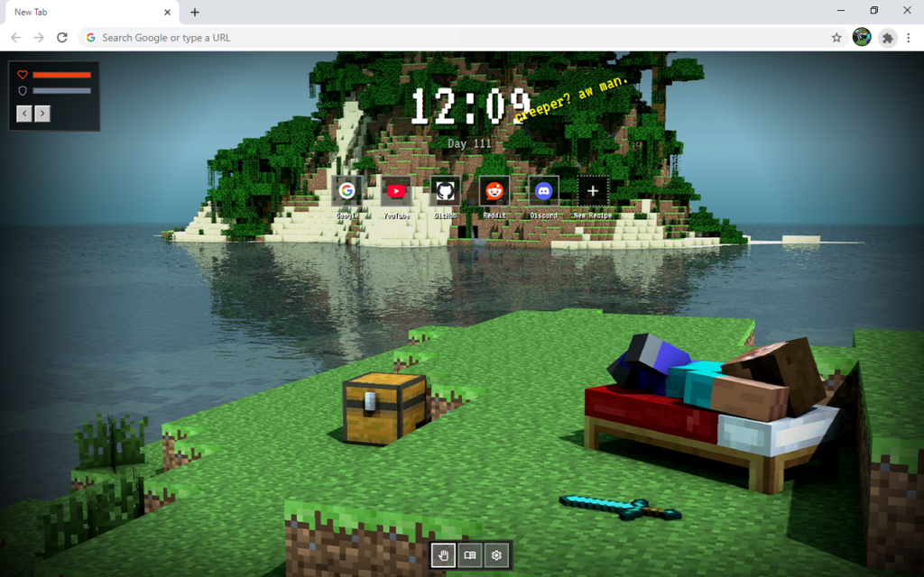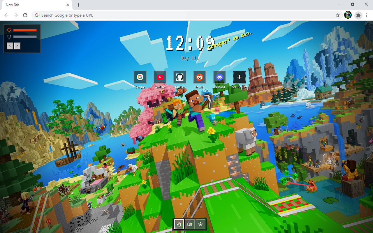 Each time you open a new tab, the extension displays a beautiful minecraft wallpaper and useful custom website shortcuts. It creates a visually engaging experience for anyone who loves a cool minecraft background.