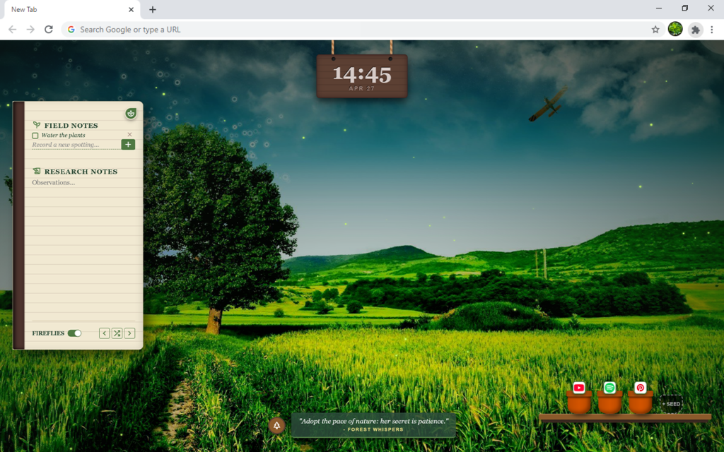 ✓ Peaceful Visuals: Open a new tab and instantly relax with a vibrant greenery background on your screen.