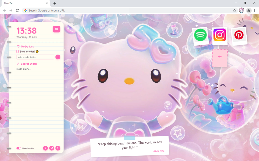 ✓ Ambient Effects: Turn on the “Magic Sparkles” toggle at the bottom left to add cute floating effects. It is a great way to transform your browser into a truly aesthetic wallpaper environment.