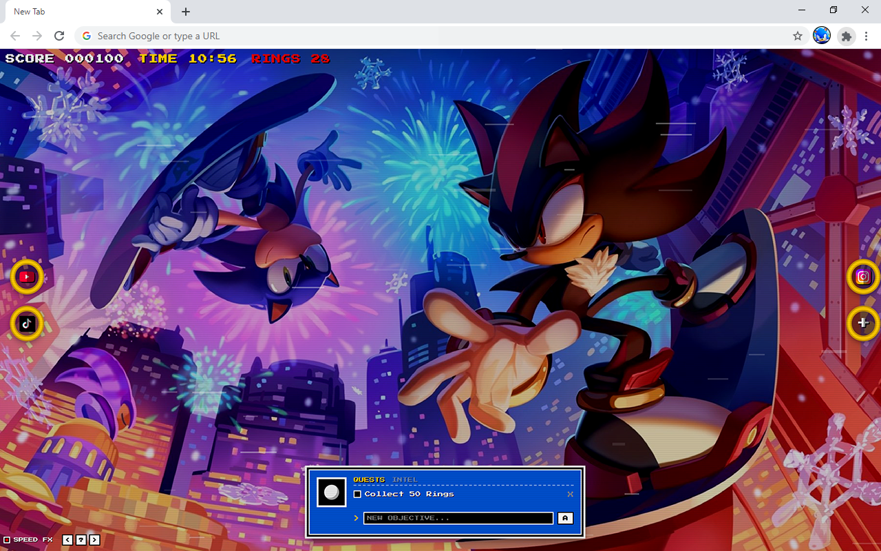 ✓ High-Speed Visuals: Open a new tab and dash into action with a vibrant sonic background.
