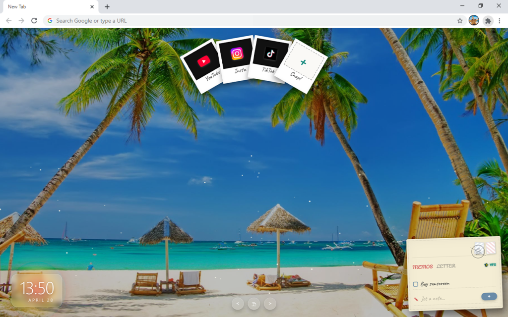 Summer Beach HD Wallpaper New Tab brings the warmth of a tropical vacation straight to your screen, keeping your everyday browsing fast and highly functional.